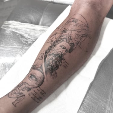 Ame completamente todo! el lugar, mis diseños, la paciencia que tiene el para todo, el tiempo que se toma para que cada detalle y todo quede perfecto, el estudio, el aseo y precaución con sus elementos la verdad es algo de admirar, 10/10 y mis tatuajes quedaron hermosos, nada de dolor tiene una mano super suave la verdad te pones hablar y se te olvida que te lo están haciendo jaja definitivamente mi primer tatuador y al parecer quiero que sea el único🥹